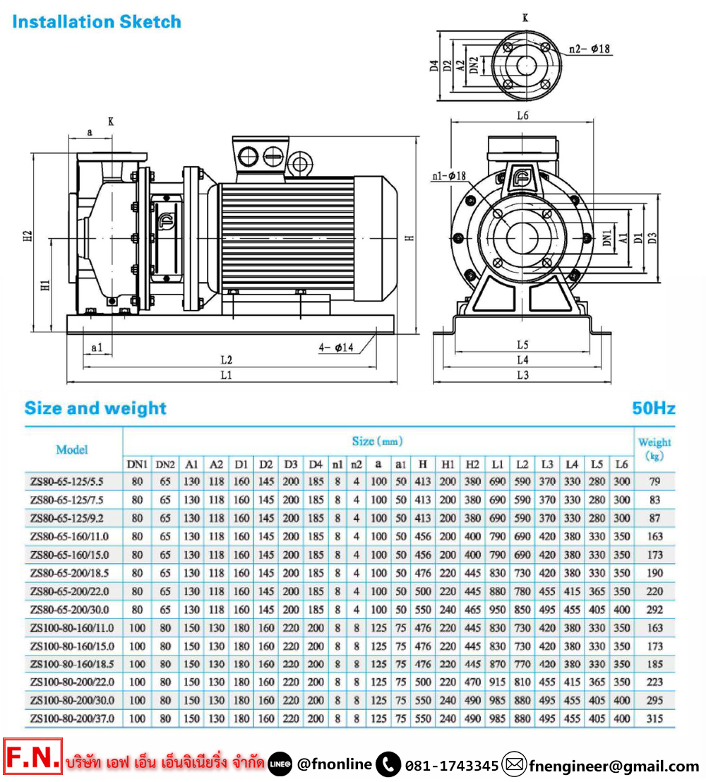 • Discharge Size ขนาดท่อส่ง : 100×80 มิล