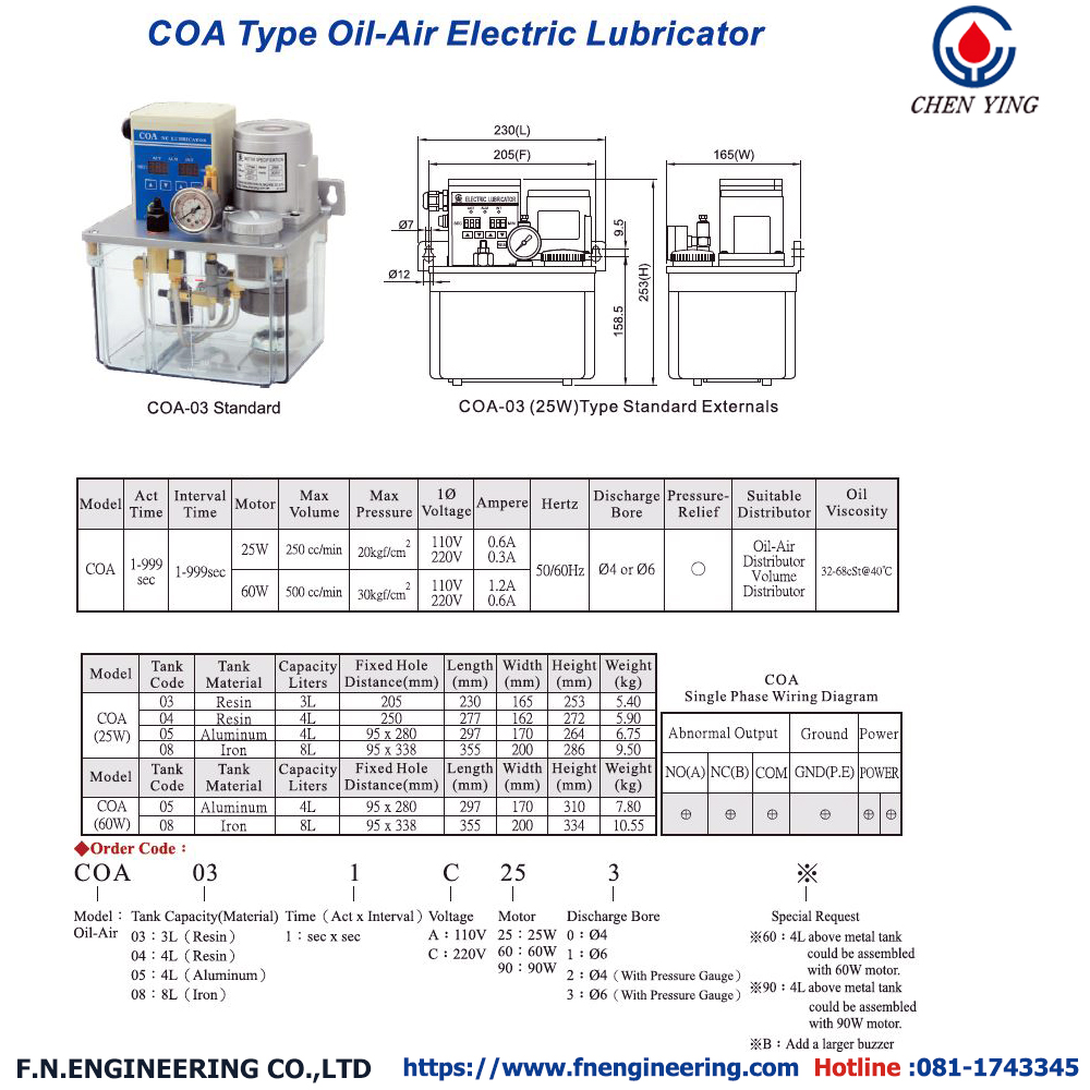 COA-3 ปั้มจ่ายหล่อลื่นไฟฟ้า ชนิดน้ำมัน-ลม 25W.220V.ถัง3 ลิตร (มีระบบตัวตั้งเวลา)