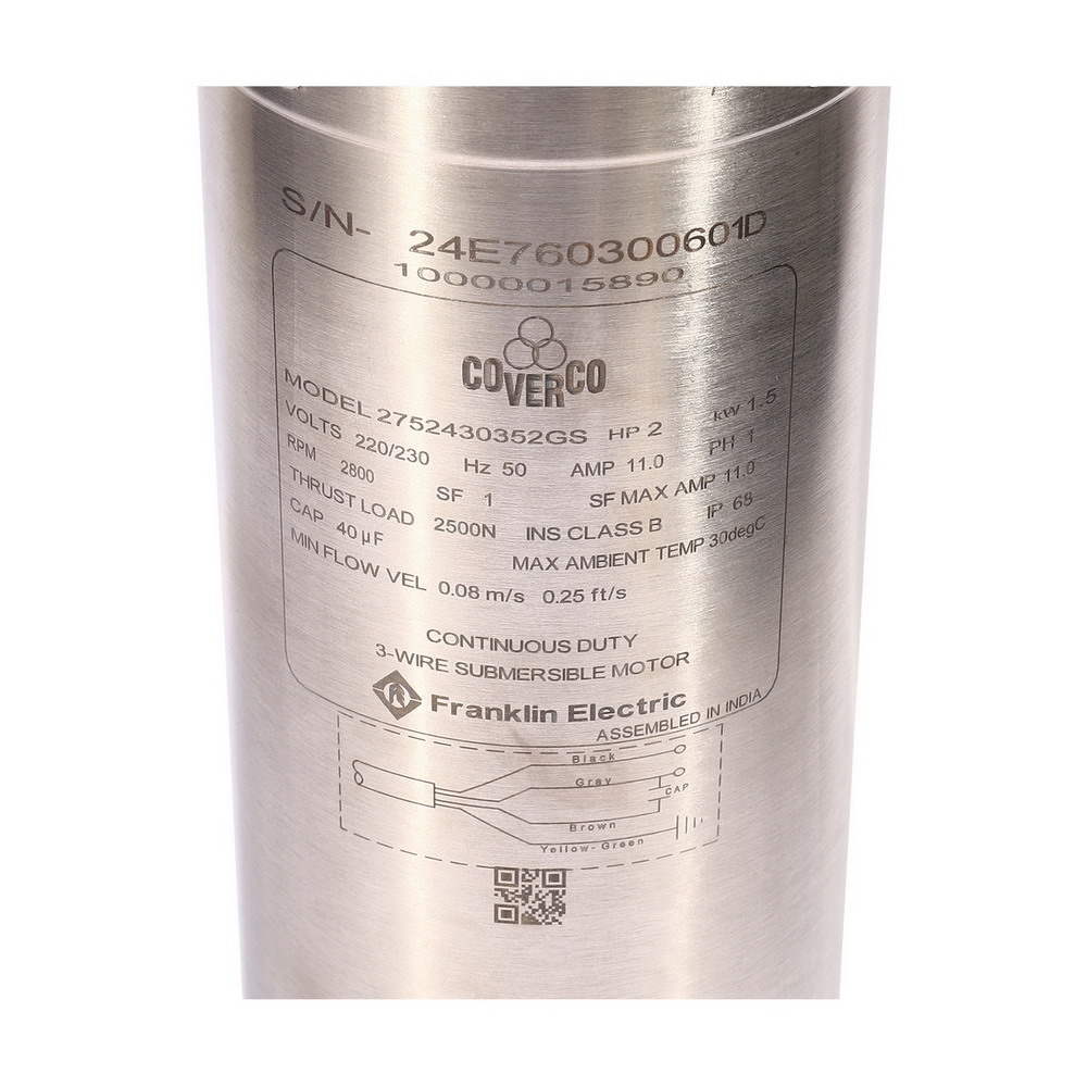 • COVERCO By FRANKLIN ชุดปั๊มบาดาล 4ADE4 16ใบ 2HP 220V. ท่อส่ง 1-1/2″ W/O สายไฟ ฝาบ่อ