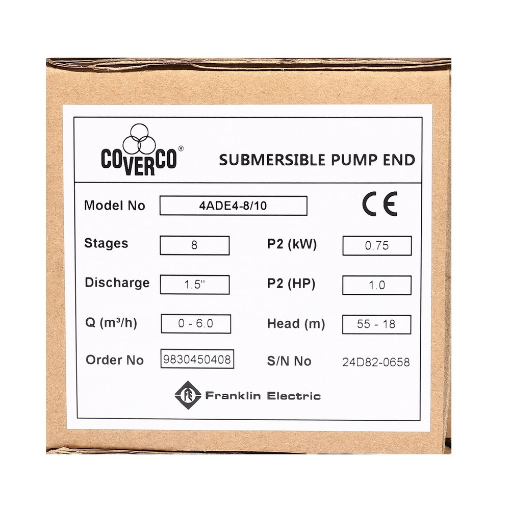 • หัวปั๊มบาดาลขนาด 4 นิ้ว COVERCO By FRANKLIN รุ่น 4ADE4-8/10