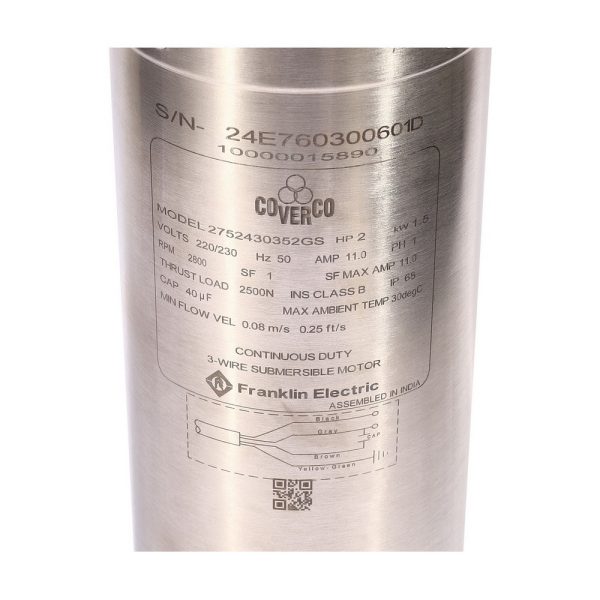 • COVERCO By FRANKLIN ชุดปั๊มบาดาล 4ADE6 14ใบ 2HP 220V. ท่อส่ง 2″ W/O สายไฟ ฝาบ่อ