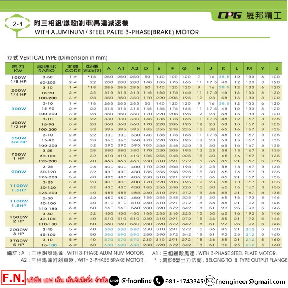 CPG CV100S มอเตอร์เกียร์ ชนิดหน้าแปลน 1/8HP 380V อัตราทด 3∼200