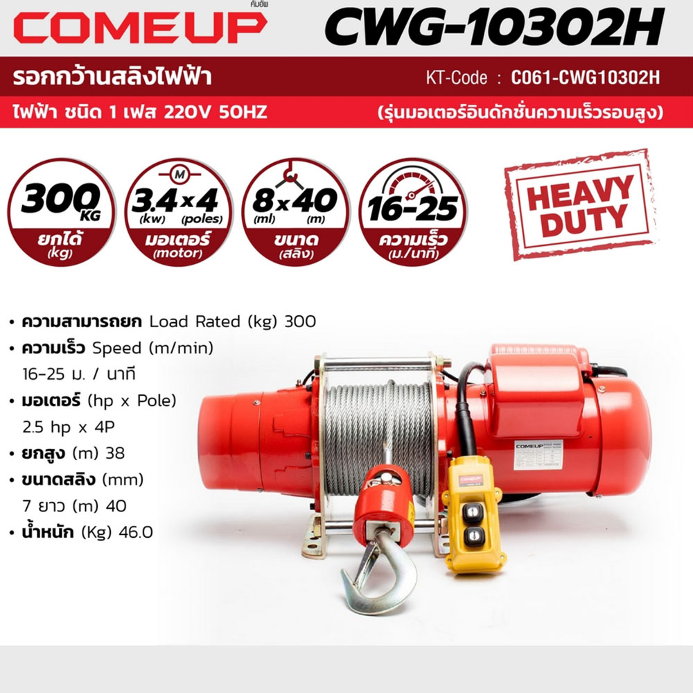 • Come-Up Dlectric Winch” คัมอัพ” รอกกว้านสลิงไฟฟ้า รอกกว้านสลิงไฟฟ้า รุ่นความเร็วสูง ชนิดไฟฟ้า 1 เฟส 220 V,50Hz