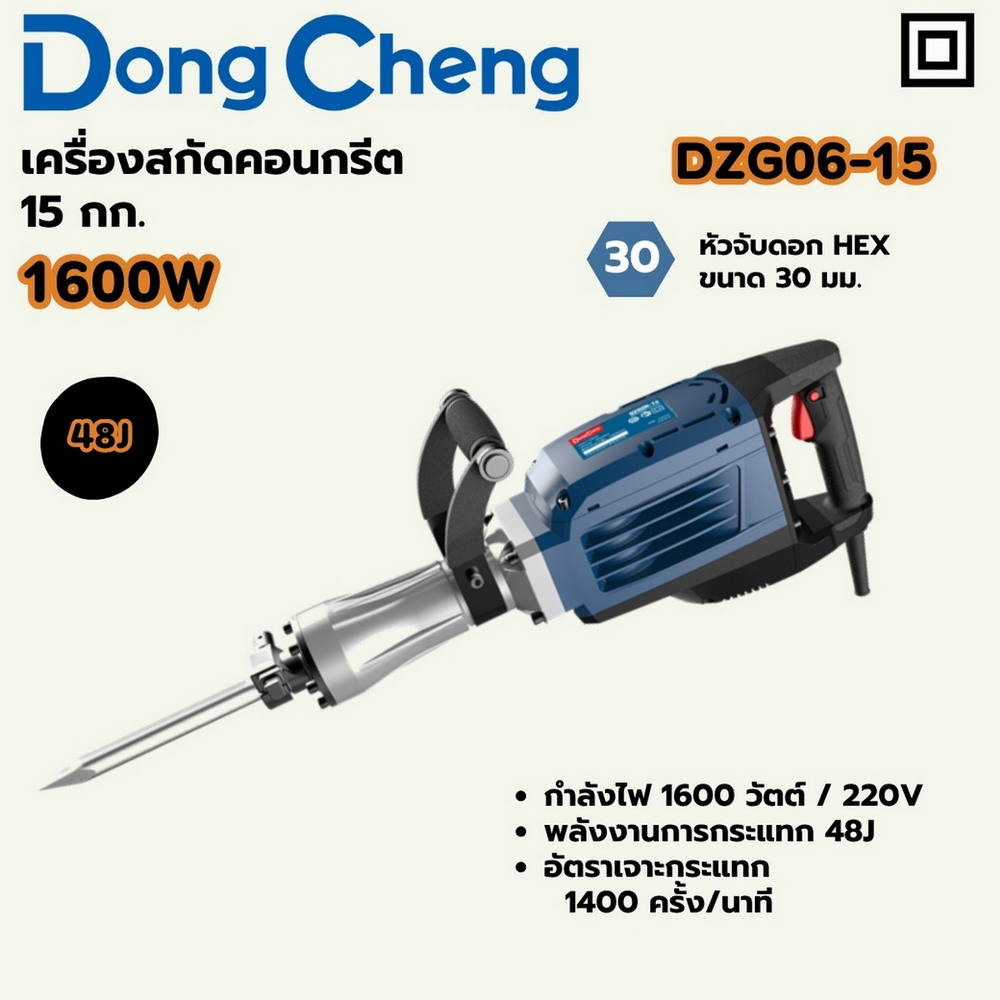 DONG CHENG DC-DZG06-15 เครื่องสกัดไฟฟ้า 15KG. หัวจับ 30MM. 1,600W. 220V.พลังงานการกระแทก 48 จูล