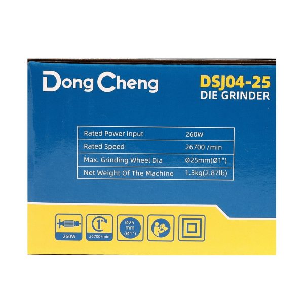 DONG CHENG เครื่องเจียร์แกน 6 มม. คอสั้น รุ่น DSJ04-25 กำลังไฟฟ้า 260 วัตต์ เส้นผ่านศูนย์กลางล้อเจียร 25 มม. ความเร็วรอบตัวเปล่า 26700 รอบ/นาที