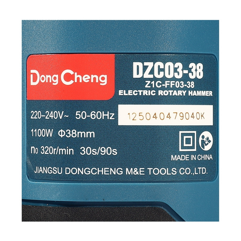 DONG CHENG สว่านโรตารี่ SDS Max 2 ระบบ ขนาด 38 มม. รุ่น DZC03-38 กำลังไฟฟ้า 1100 วัตต์ พลังงานการกระแทก 7.9 จูล ความเร็วรอบตัวเปล่า 0-320 รอบ/นาที