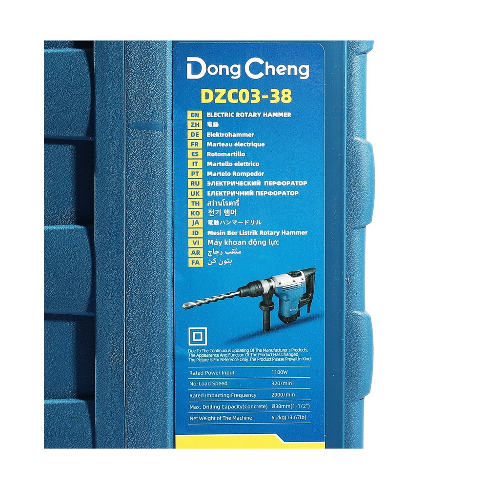 DONG CHENG สว่านโรตารี่ SDS Max 2 ระบบ ขนาด 38 มม. รุ่น DZC03-38 กำลังไฟฟ้า 1100 วัตต์ พลังงานการกระแทก 7.9 จูล ความเร็วรอบตัวเปล่า 0-320 รอบ/นาที