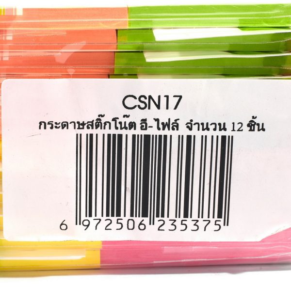• กระดาษสติ๊กโน๊ต (คละสี) E-FILE รุ่น CSN17 ขนาด 1.5 X 2 นิ้ว (12 ชิ้น/แพ็ค)