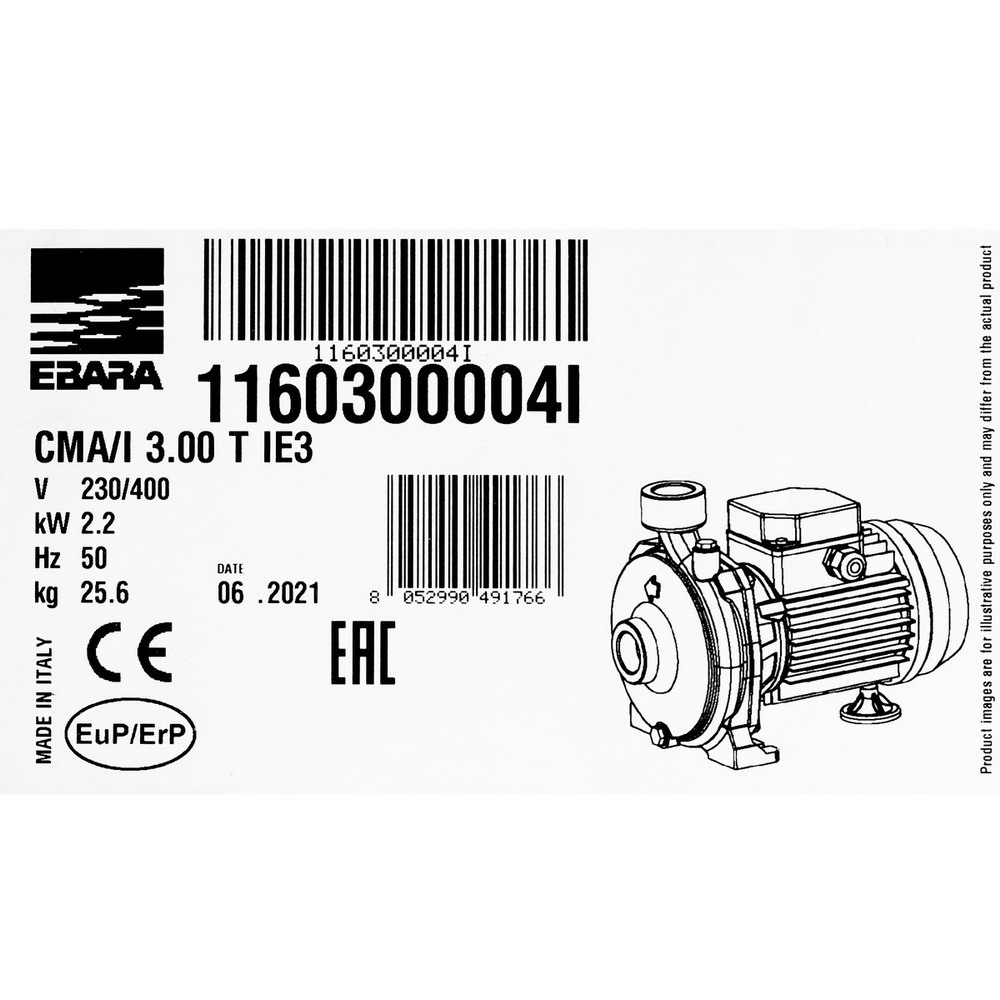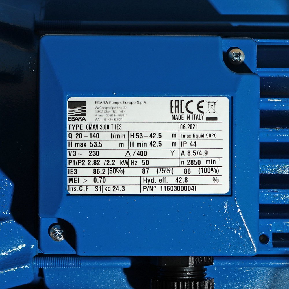 EBARA CMA-3.00T ปั๊มหอยโข่ง 3HP 380V ท่อส่ง 1.1/4 นิ้ว x 1นิ้ว
