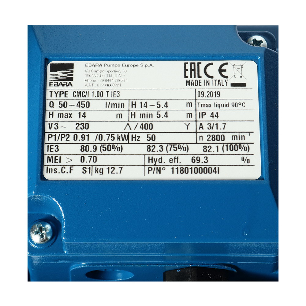EBARA CMC-1.00T ปั๊มหอยโข่ง 1HP 380V ท่อส่ง 2 นิ้ว x 2 นิ้ว