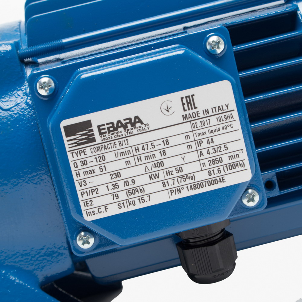 EBARA COMPACT B-12 ปั๊มน้ำหลายใบพัดแนวนอน 1.2HP 380V ท่อส่ง 1.1/4นิ้ว X 1นิ้ว