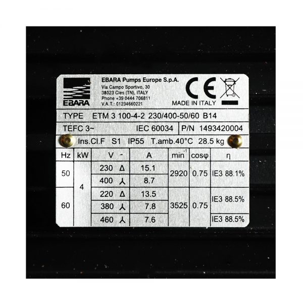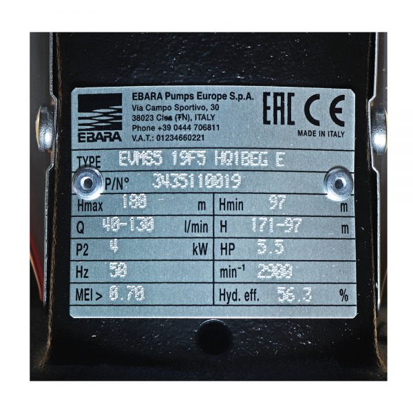 EBARA EVMS5 19F5/4 ปั๊มน้ำหลายใบพัดแบบตั้ง ท่อ 1.1/4″X1.1/4″ 5.5HP 380V.