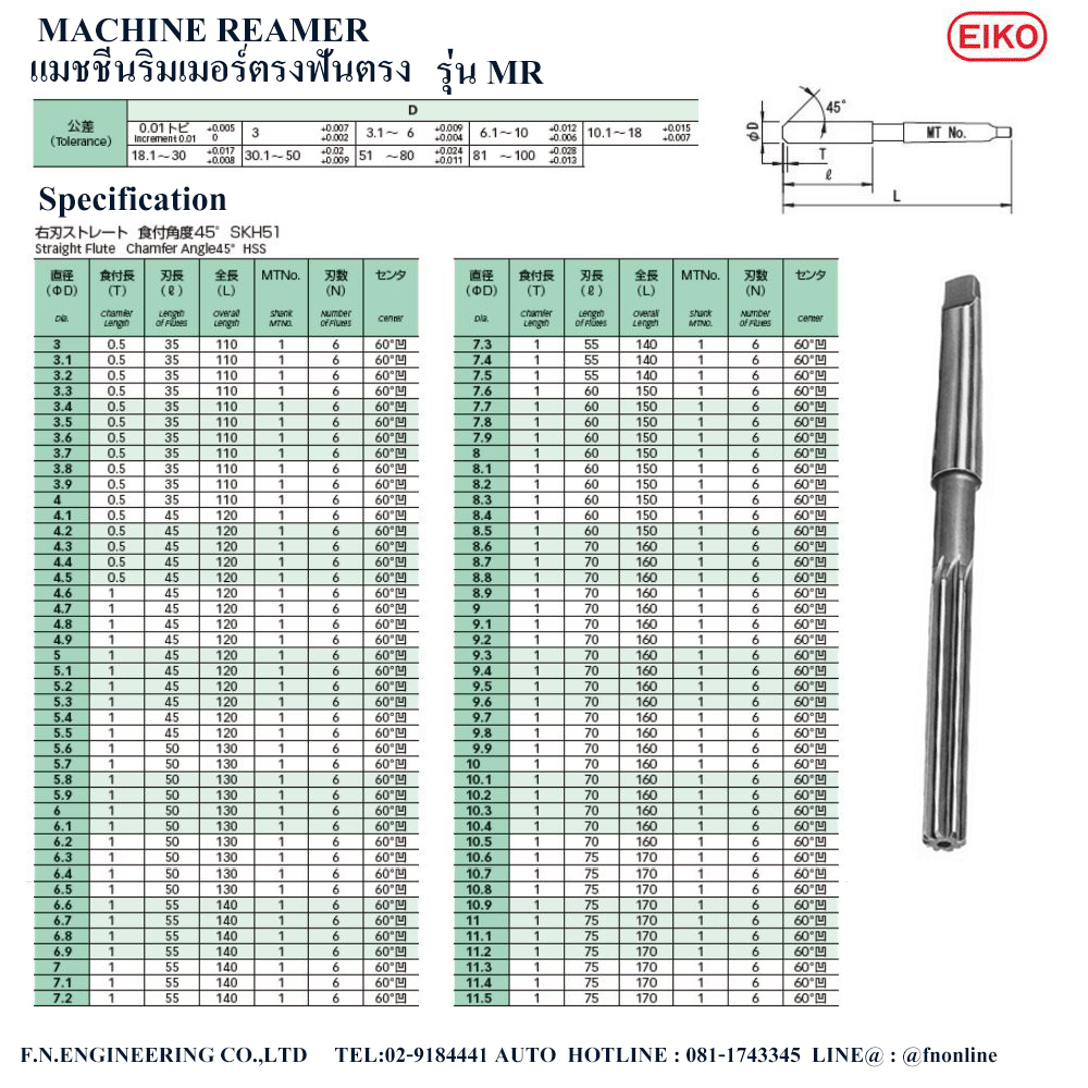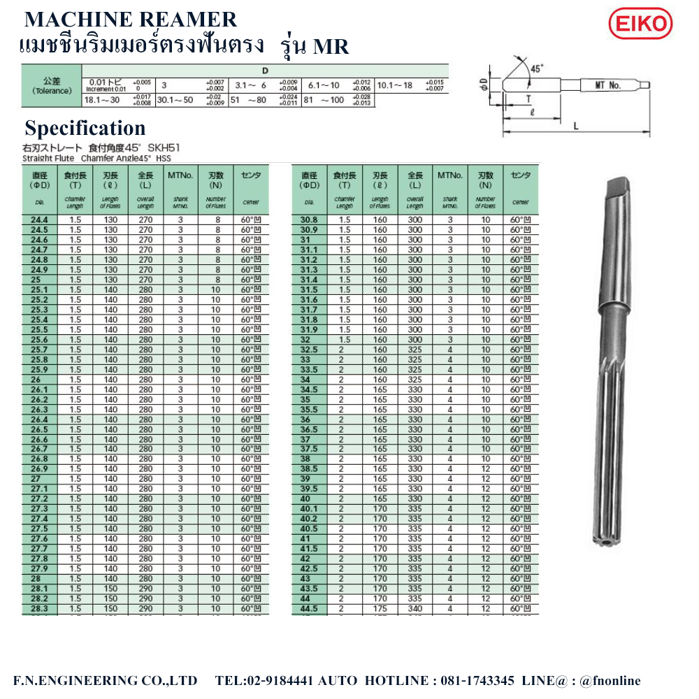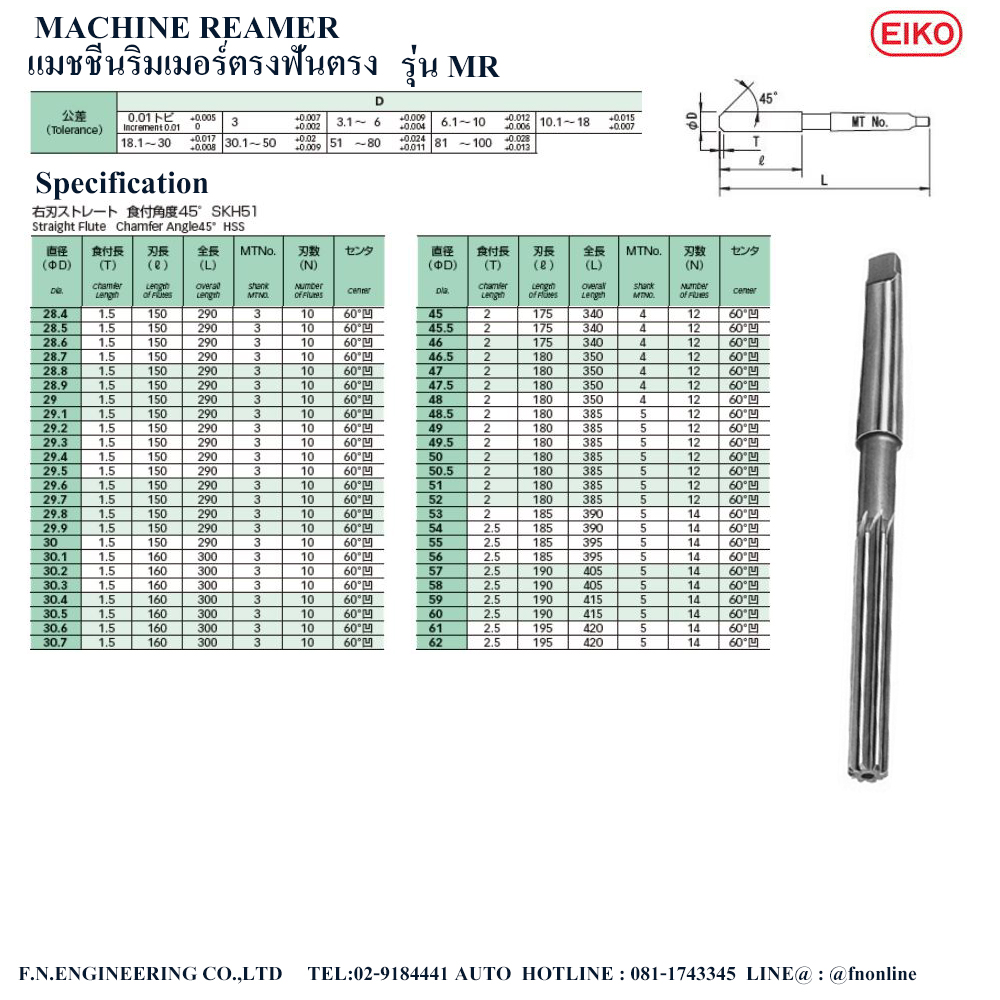 EIKO MR_29.0MM แมชชีนริมเมอร์ก้าน MT3 ขนาด Ø29x150x290MM.