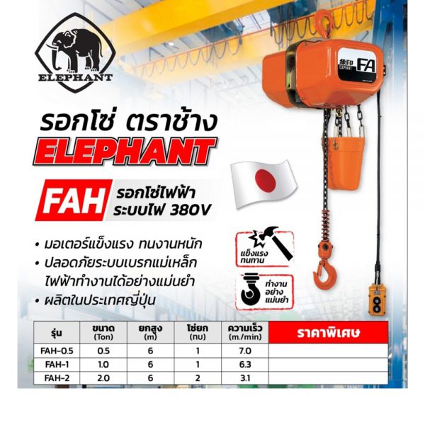 ELEPHANT FAH-0.5 รอกโซ่ไฟฟ้า ตราช้าง 0.5 T/ 380V (6ม.)