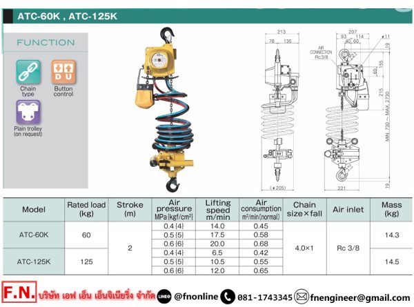 ENDO ATC-125K รอกโซ่ลม ระยะยก 2M. สามารถยก 125KG.