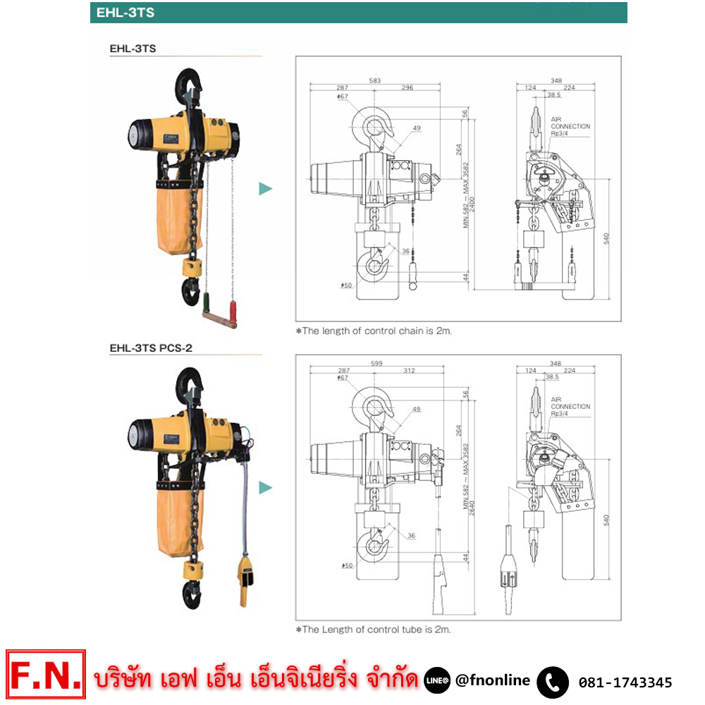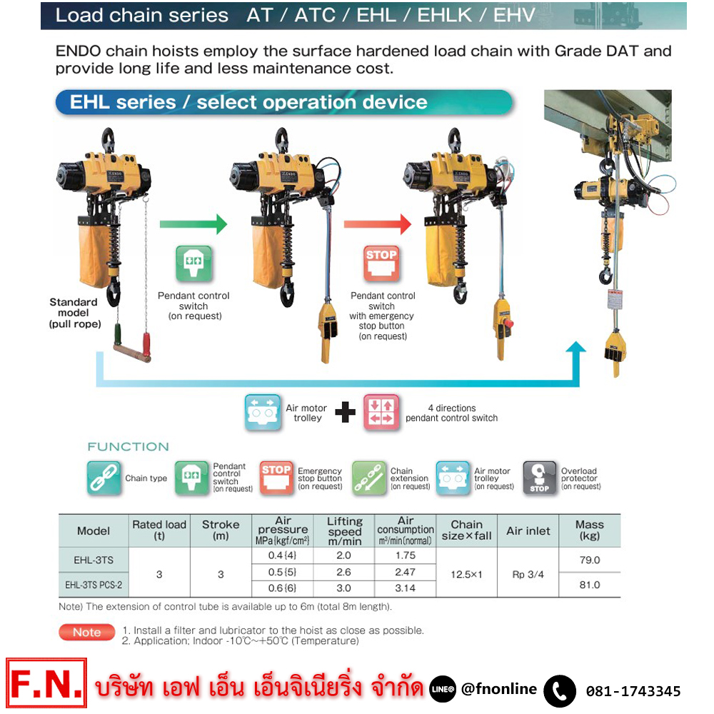 ENDO EHL-3TS PCS-2 รอกโซ่ลม+สวิตช์ควบคุม ระยะยก 3M. สามารถยก 3 TON