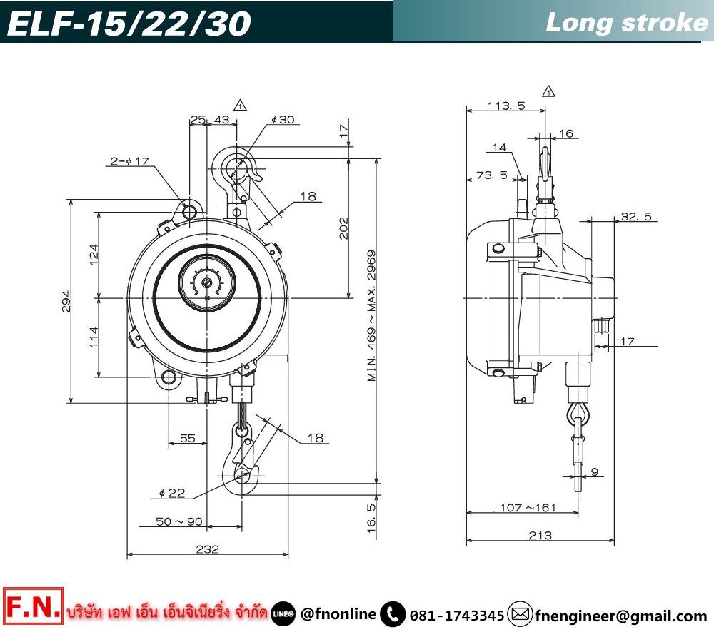 • รุ่น ELF ช่วงชักยาวและเหมาะอย่างยิ่งในพื้นที่ขนาดใหญ่สำหรับการแขวนอุปกรณ์ไฟฟ้า จิ๊ก และวัสดุสำหรับสินค้าแปรรูป