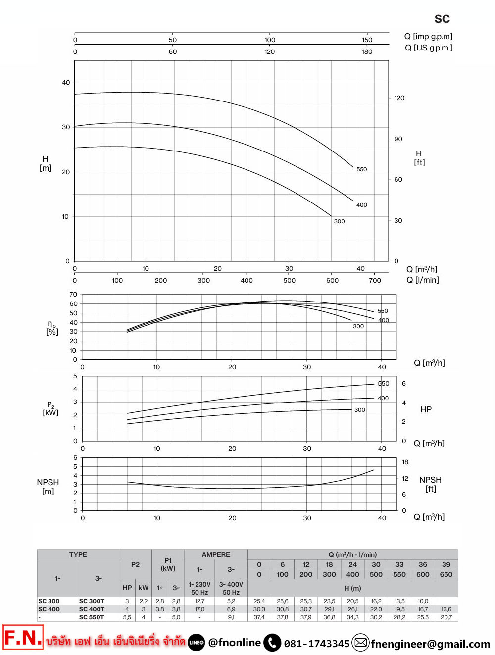 • FORAS SC400T ปั๊มน้ำหอยโข่ง 4HP 400V. ท่อ 3 นิ้ว x 2 นิ้ว
