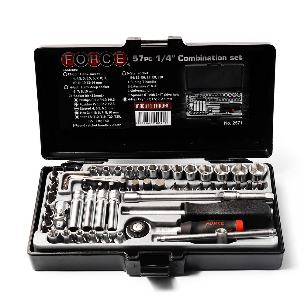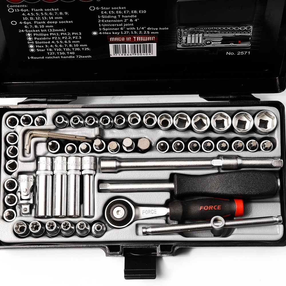 FORCE 2571 ชุดบ็อกซ์1/4” 6PT+หัวจีบ 57 ชิ้น