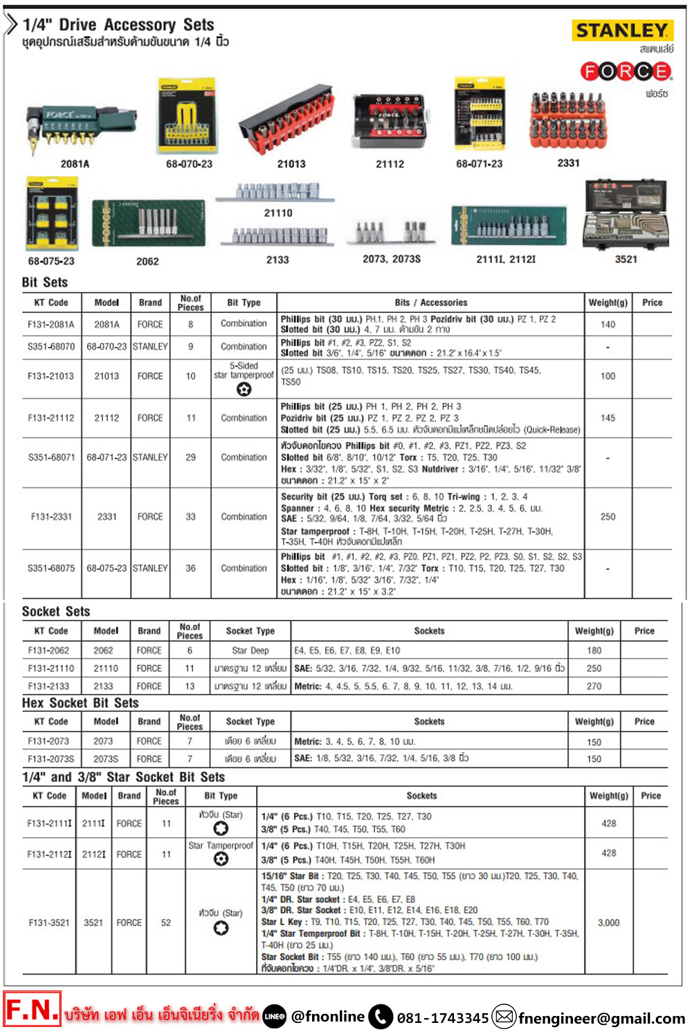 • ชุดลูกบ๊อกซ์หัวจีบ FORCE สินค้าคุณภาพจากประเทศไต้หวัน มีระบบรับประกันคุณภาพ