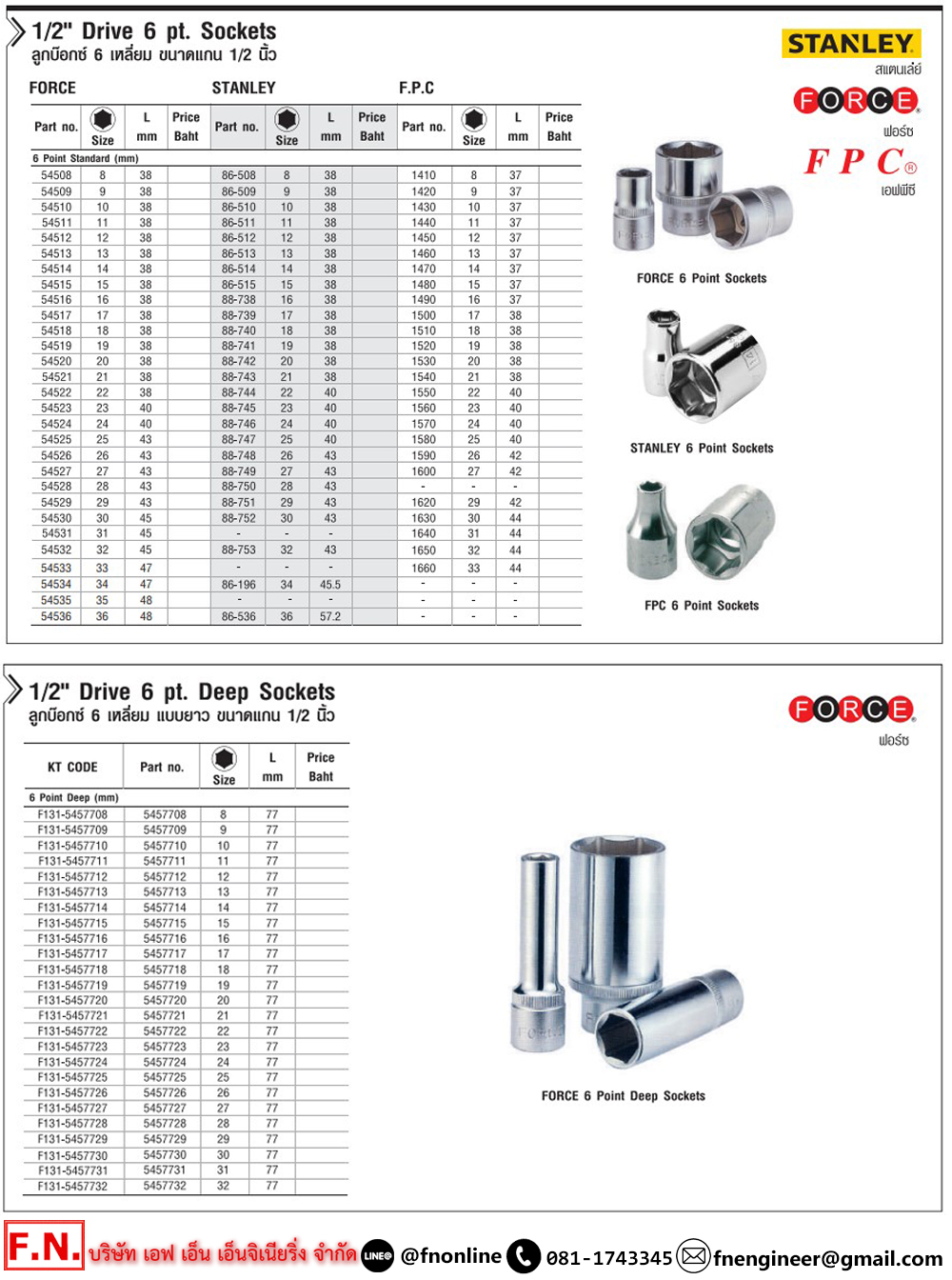 • Socket Type : มาตรฐาน 6 เหลี่ยม สำหรับเดือย 1/2 นิ้ว