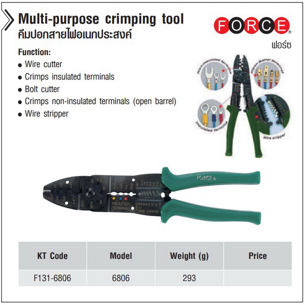 • FORCE 6806A คีมปอกสายไฟ 10-20 AWG สามารถตัดลวดและสายไฟได้