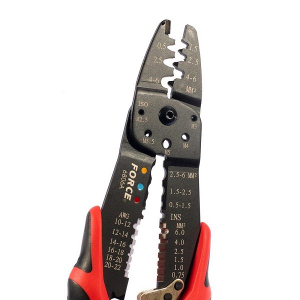 FORCE คีมปอกสายไฟ 10 – 20 AWG FORCE รุ่น 6806A สามารถตัดลวดและสายไฟได้ ด้ามแดง