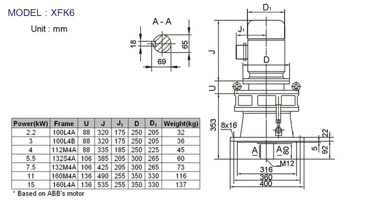 FORCE XFK6 หัวเกียร์ไซโครไดร์ฟ หน้าแปลน ใช้กับมอเตอร์หน้าแปลน 2.2-15KW อัตราทด 1:9∼1:87