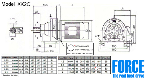 FORCE XK2C หัวเกียร์ไซโครไดร์ฟ ขาตั้ง ใช้กับมอเตอร์หน้าแปลน 0.25-4KW อัตราทด 1:7∼1:87