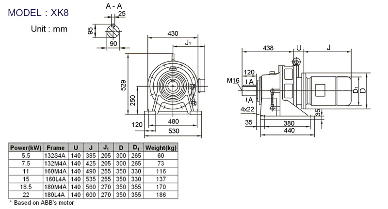 • ใช้ประกอบกับมอเตอร์มาตรฐาน IEC 5.5KW.22KW.