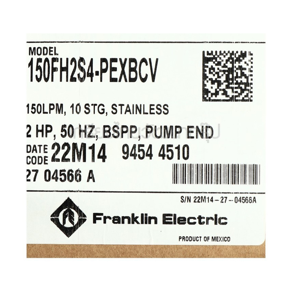 FRANKLIN 150FH2S4-PEXBCV เฉพาะหัวปั๊มบาดาลพร้อมเช็ควาล์ว 4 นิ้ว ท่อส่งออก 2 นิ้ว มอเตอร์ 2HP