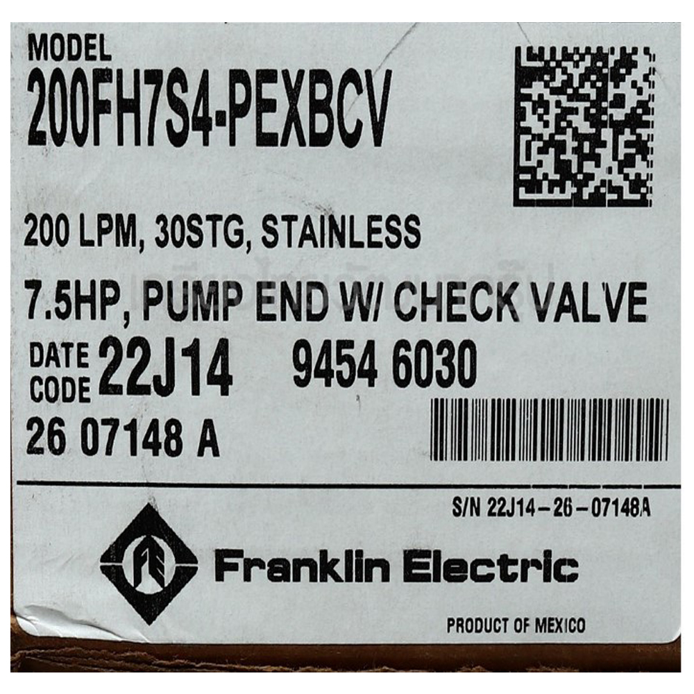 FRANKLIN 200FH7S4-PEXBCV เฉพาะหัวปั๊มบาดาล 4 นิ้ว ท่อส่งออก 2 นิ้ว มอเตอร์ 7.5HP