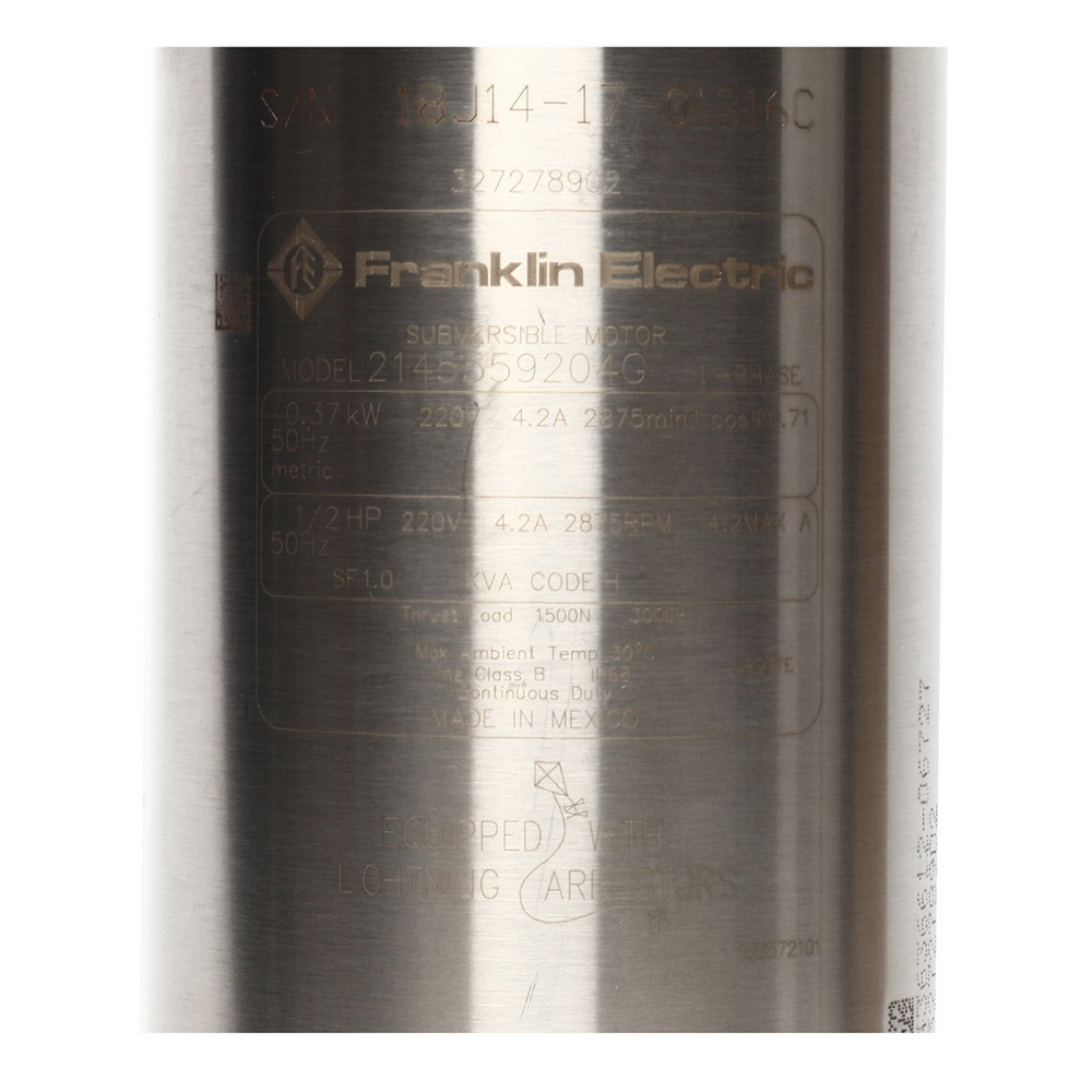 • มอเตอร์ แฟรงคลิน อิเลคทริค ( 0.5 HP/220 V. ) สำหรับบ่อบาดาล กำลังเต็มประสิทธิภาพทนทุกสภาพ น้ำบาดาลด้วยโครงสร้างสแตนเลส พร้อมสายไฟ 48″