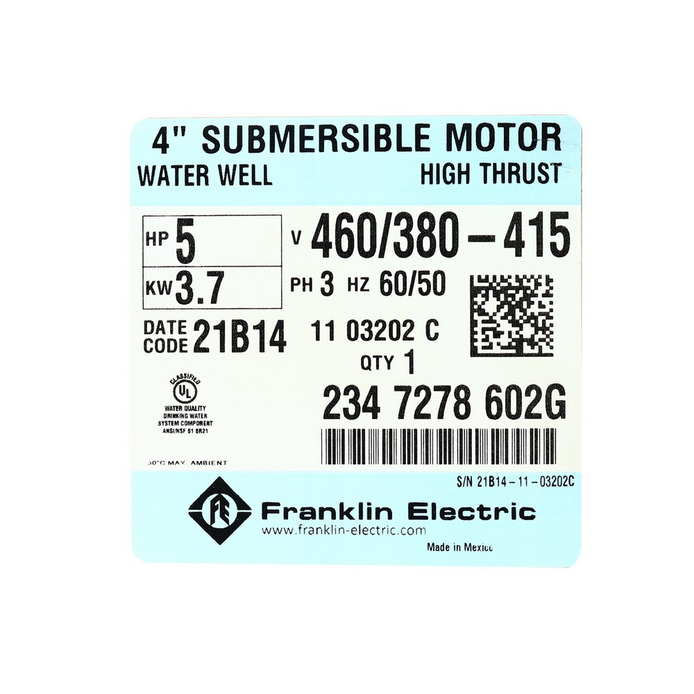 FRANKLIN 2343278602G มอเตอร์ 4″ 5 HP 3เฟส 380V พร้อมสายไฟ 100″