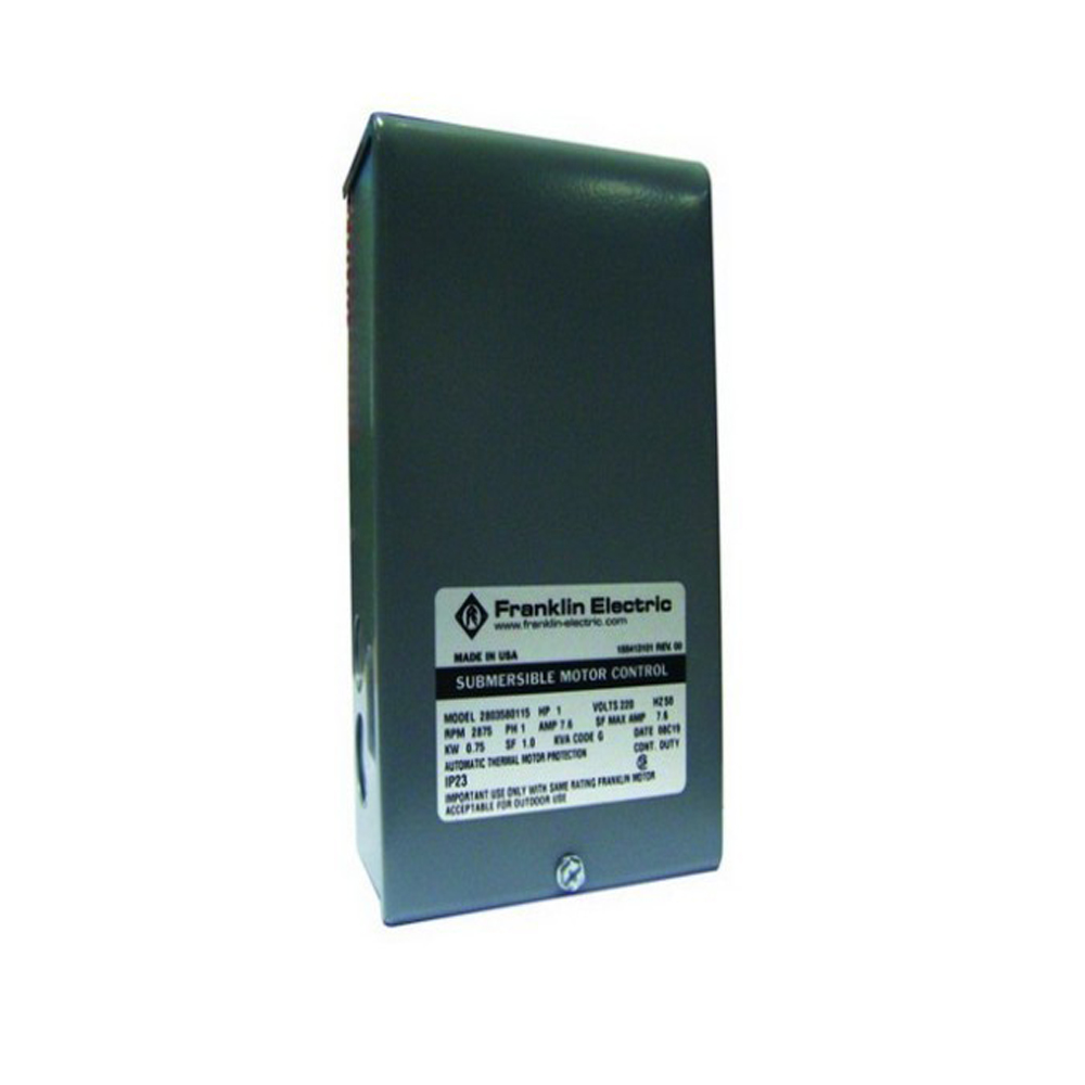 • กล่องสวิทซ์ควบคุม ( Control Box ) แฟรงคลินขนาด 0.5 HP เป็นอุปกรณ์ที่ใช้สำหรับมอเตอร์ 1 เฟส 220V/50Hz เท่านั้น