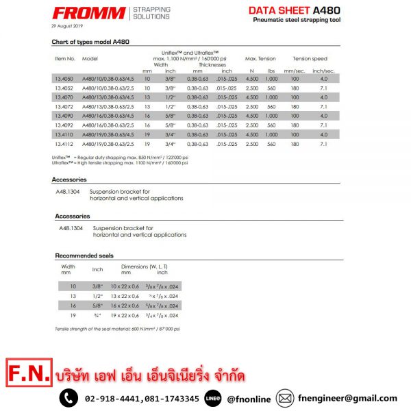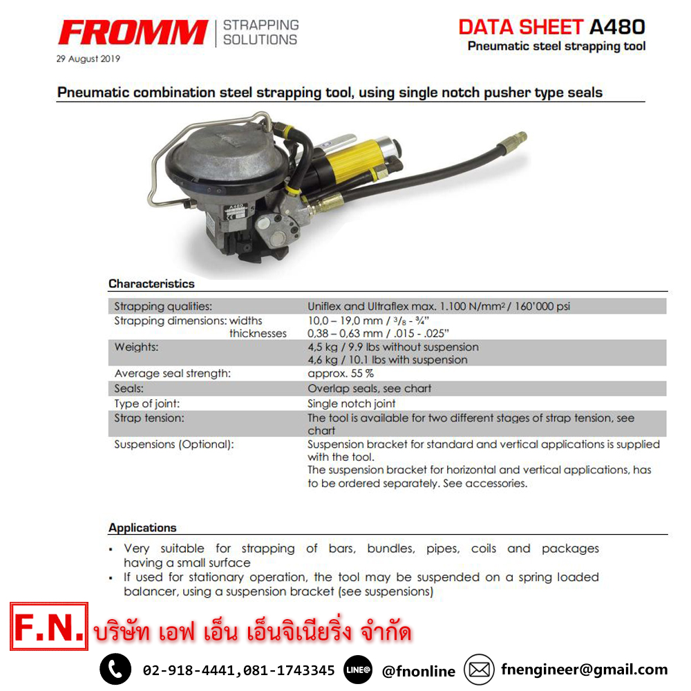 FROMM A480 เครื่องรัดเหล็กพืดระบบลม ขนาดเหล็กรัด 10-19 MM.