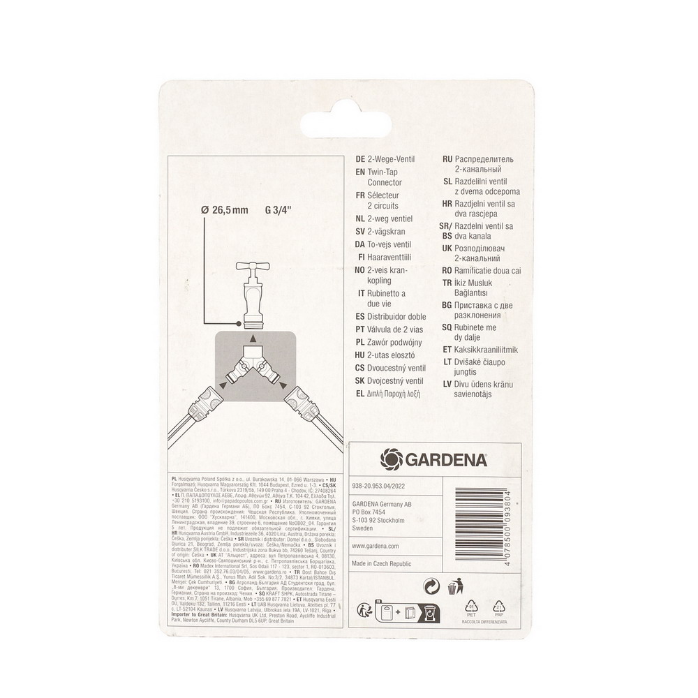 • ข้อต่อก๊อกน้ำหัวแยกสองทาง GARDENA รุ่น 00938-20 ขนาด 26.5 มม. (3/4 นิ้ว)