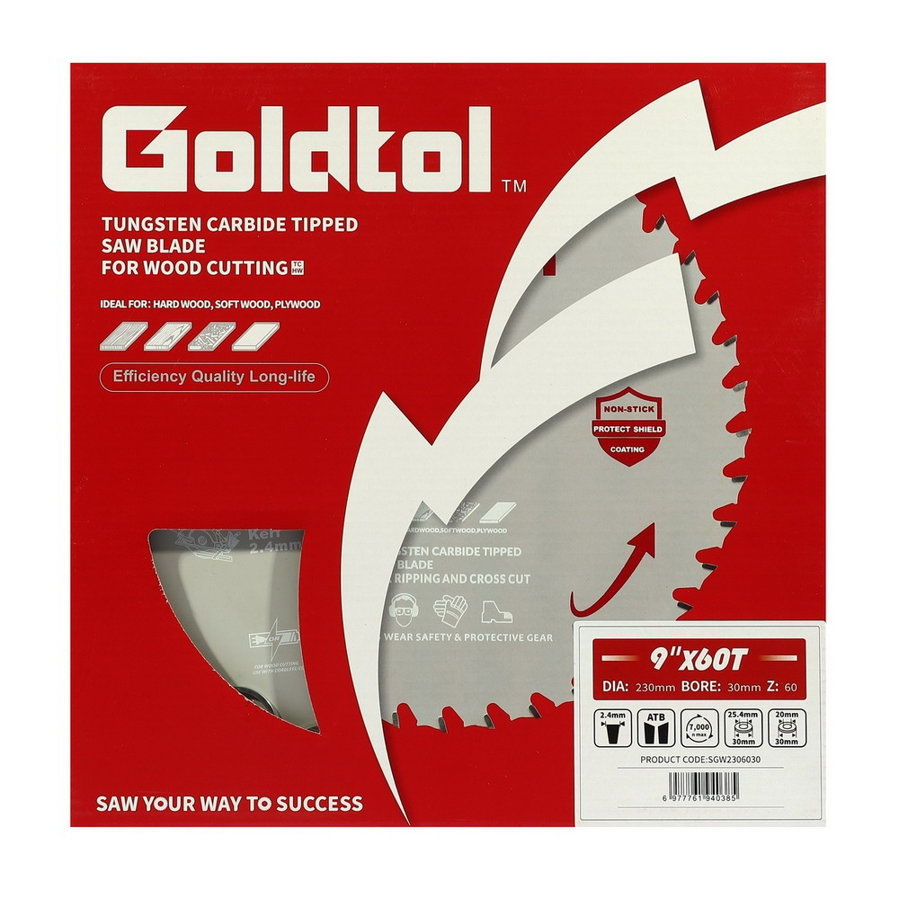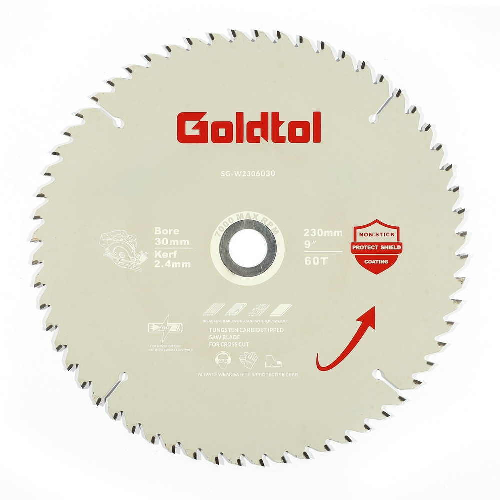GOLDTOL ใบเลื่อยวงเดือนตัดไม้ 9 นิ้ว (230 มม.) 60 ฟัน ใช้ตัดไม้, ไม้อัด, ไม้มีตะปู