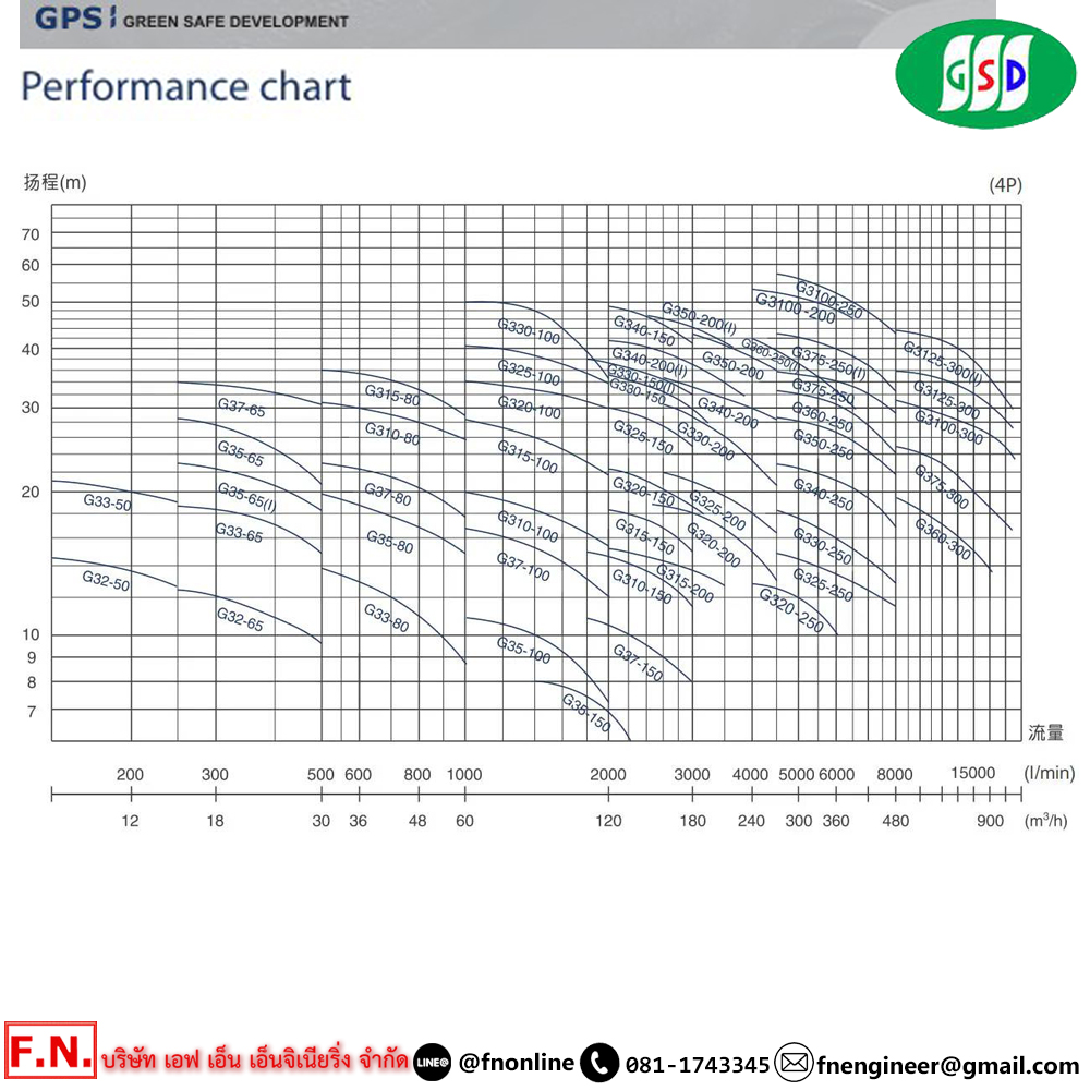 GPS G37-100-4P ปั๊มน้ำหอยโข่ง 7.5HP.380V.4Pole ท่อ 100MM. ความสามารถ 69.2∼103.8M³/H ส่งสูง 16.6∼13.2M.