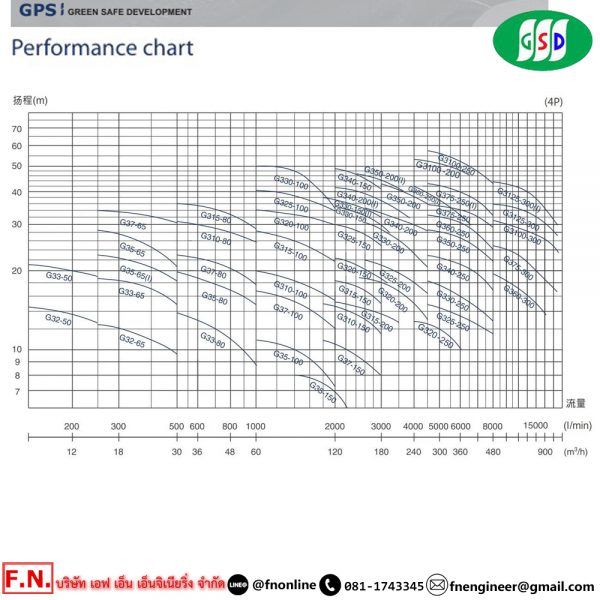 • GPS SERIES ปั๊มน้ำหอยโข่งแนวนอน รุ่น G37-100-4P ติด มอเตอร์ TECO 7.5HP.380V.4Pole ท่อ 100มิล ความสามารถ 69.2∼103.8M³/H ส่งสูง 16.6∼13.2M.