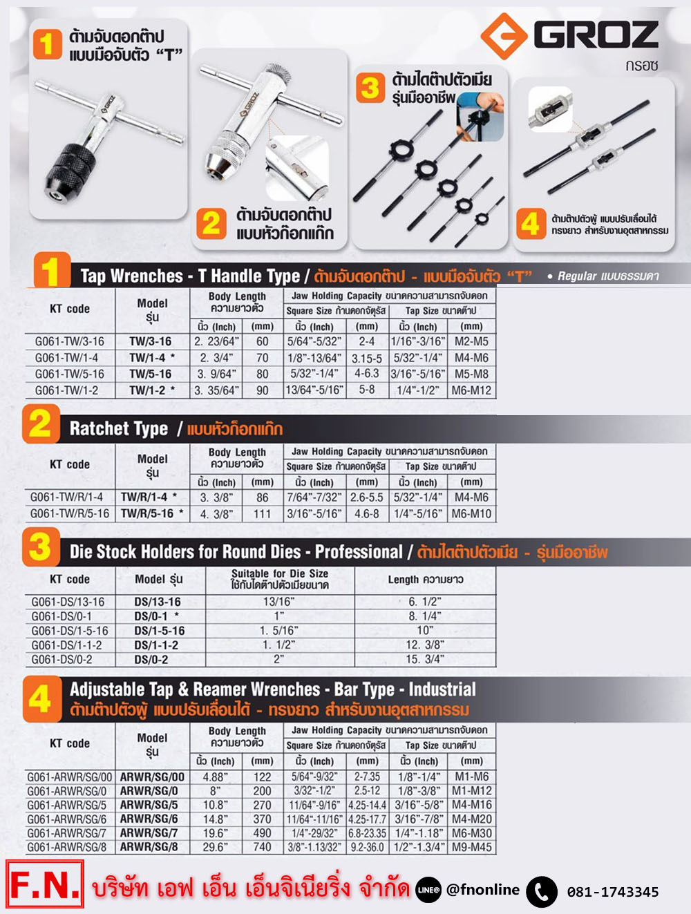• ใช้กับไดต๊าปตัวเมียขนาด : 1.5/16 นิ้ว