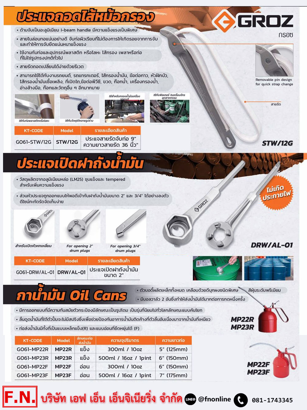 • GROZ MP22F กาน้ำมันท่อส่งอ่อน 300 ML.