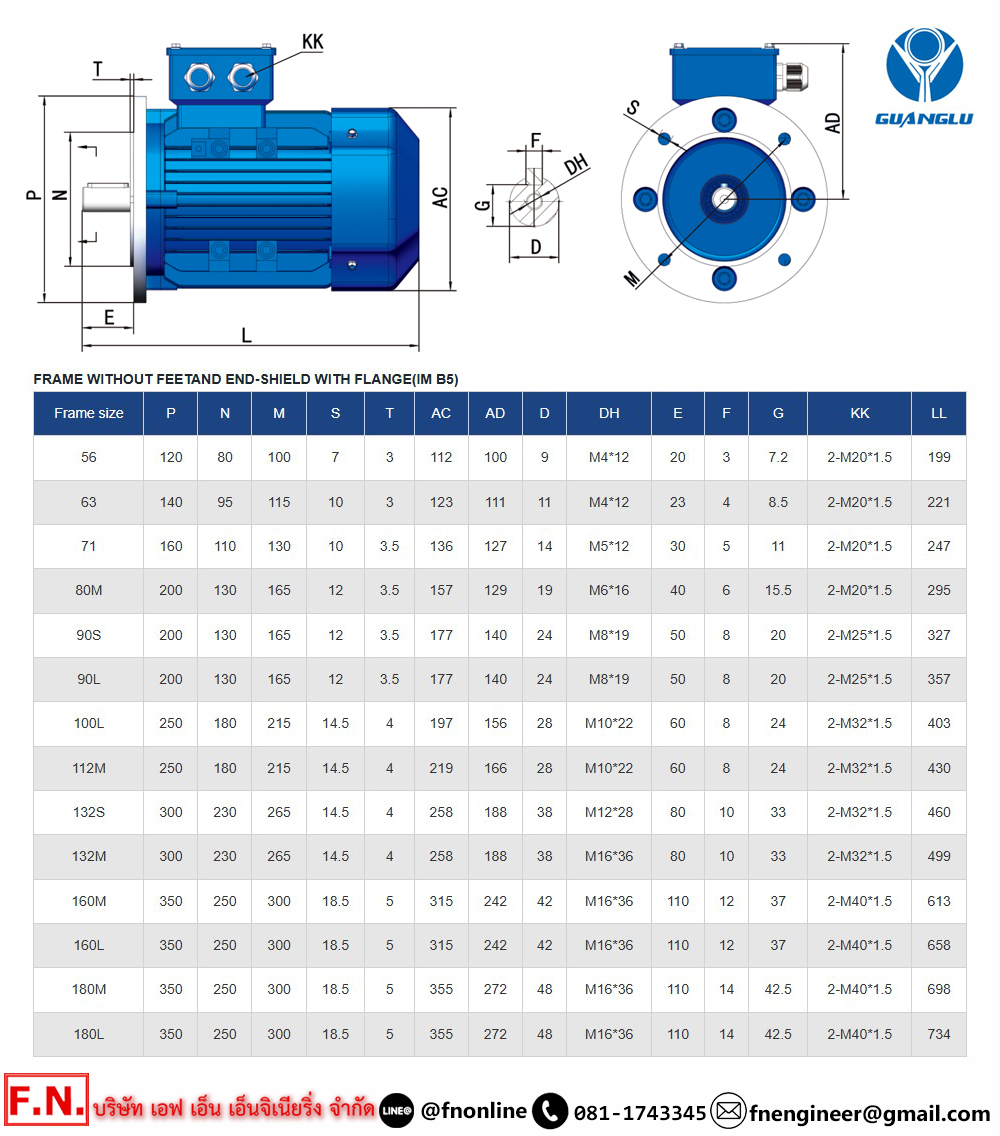 GUANGLU GE2 IE2 มอเตอร์ประสิทธิภาพสูง เฟรมอลูมิเนียม B5 ขนาด 15HP 380V 2,4,6 Pole