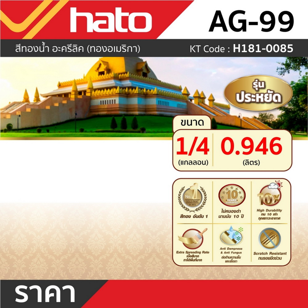 • HATO AG-99 สีน้ำทองอะคริลิค ขนาด 0.946L.(1/4 แกลลอน)