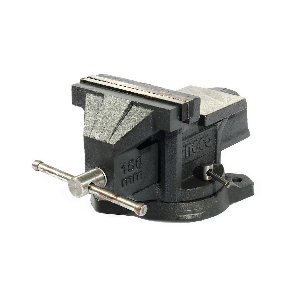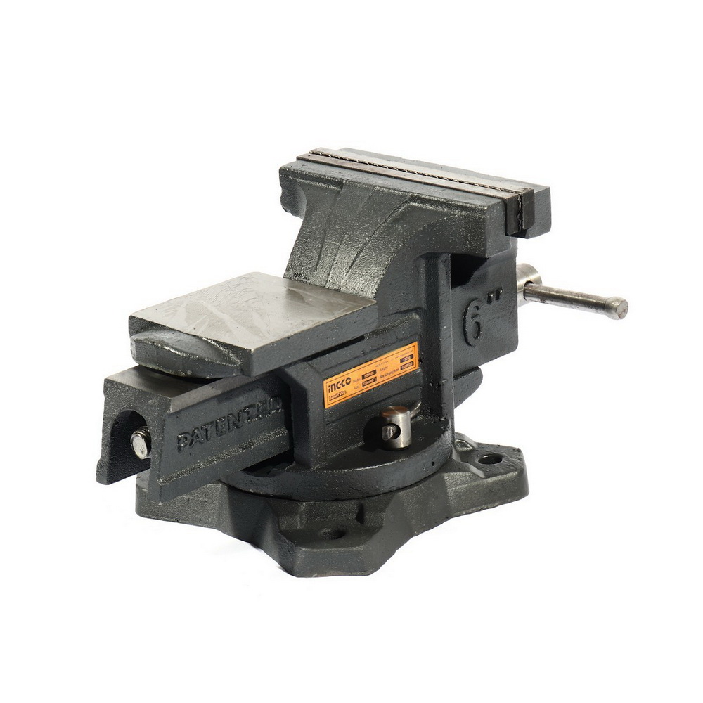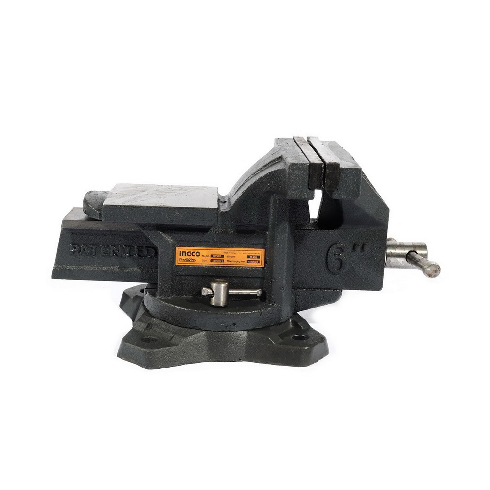 INGCO ปากกาจับชิ้นงานตั้งโต๊ะ ขนาด 6 นิ้ว จับชิ้นงานสูงสุด 1600 กก. ใช้สำหรับจับโลหะให้แน่นเพื่อตัด ขัด เจาะ ตะไบอื่นๆ แข็งแรงกระแทก ทนทานต่อการดึงตัว ฐานสามารถหมุนปรับองศาได้