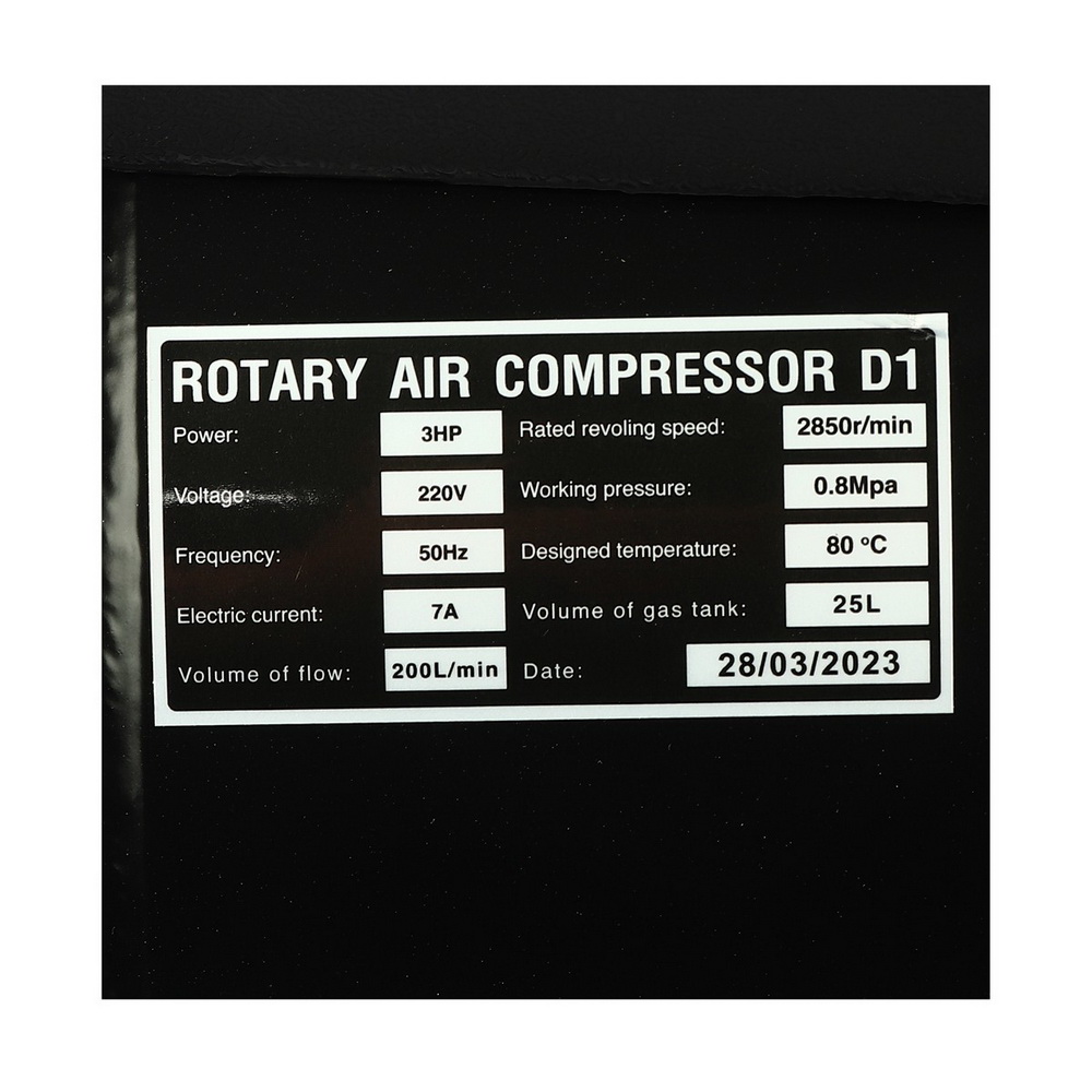 HECTO ปั๊มลมขับตรง (โรตารี่) มอเตอร์ 3 แรงม้า (2200 วัตต์) ถัง 25 ลิตร รุ่น D1 ไฟ 1 เฟส ความเร็วรอบ 2,850 รอบ/นาที แรงดันลม 8 บาร์ ปริมาณลม 200 ลิตร/นาที