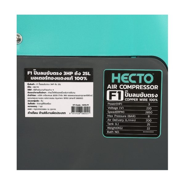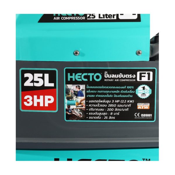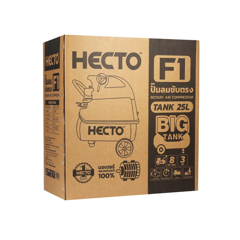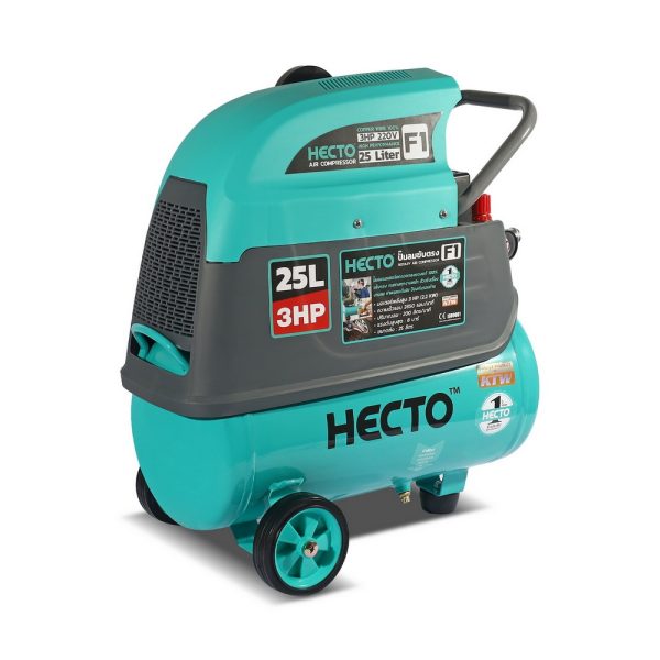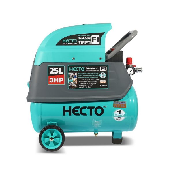 • HECTO F1 ปั๊มลมขับตรง (แบบฝาครอบเต็มใบ) 3HP 220V ถัง 25 ลิตร ความเร็ว 2850 รอบ/นาที