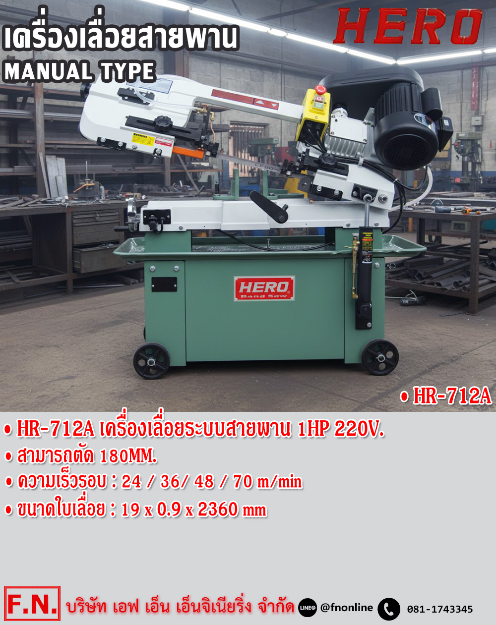 HERO HR-712A เครื่องเลื่อยระบบสายพาน ขนาด 1HP 220V. สามารถตัด 180MM.