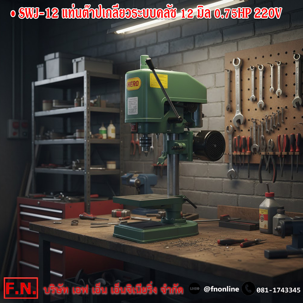 HERO SWJ-12 แท่นต๊าปเกลียวระบบคลัช 12 มิล 0.75HP 220V. ความเร็วรอบ 3 ระดับ 260/440/750 รอบ/นาที