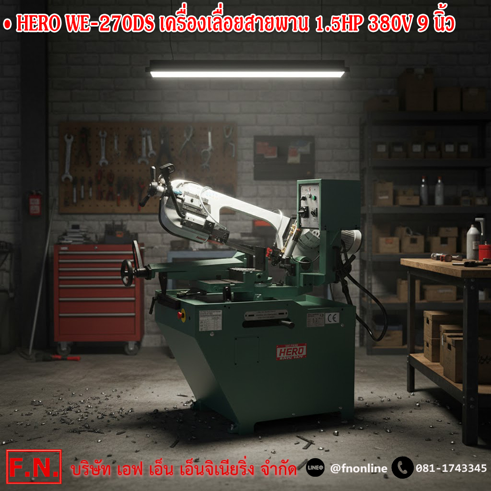 HERO WE-270DS เครื่องเลื่อยสายพาน 1.5HP 380V. สามารถตัด 227MM.(9″) (ปรับองศาที่คันเลื่อย)